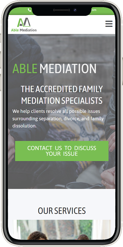Able Mediation is a family mediation practice specialising in helping clients navigate separation, divorce, and the restructuring of family relationships. They approached us to create a brand identity and website that communicated clarity, trust, and professionalism while making essential information easy to access. Alongside the visual identity and site build, they needed a strong SEO foundation to ensure they would appear as the leading mediation service in their local area.